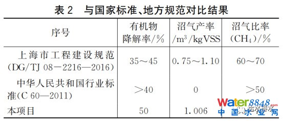 選取近年來國內(nèi)投產(chǎn)運(yùn)行的大中型厭氧消化系統(tǒng)進(jìn)行對比,結(jié)果見表3。根據(jù)有機(jī)物降解率和沼氣產(chǎn)率,可看出本項(xiàng)目主要運(yùn)行指標(biāo)較好。
