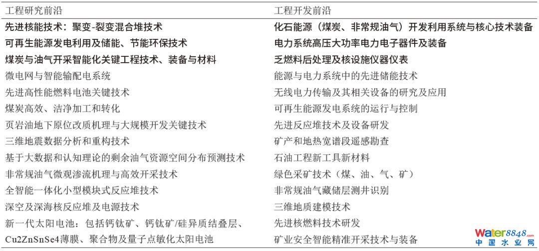 ☟表4 能源與礦業(yè)工程領(lǐng)域全球工程前沿