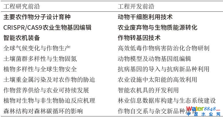 ☟表7 農(nóng)業(yè)領(lǐng)域全球工程前沿