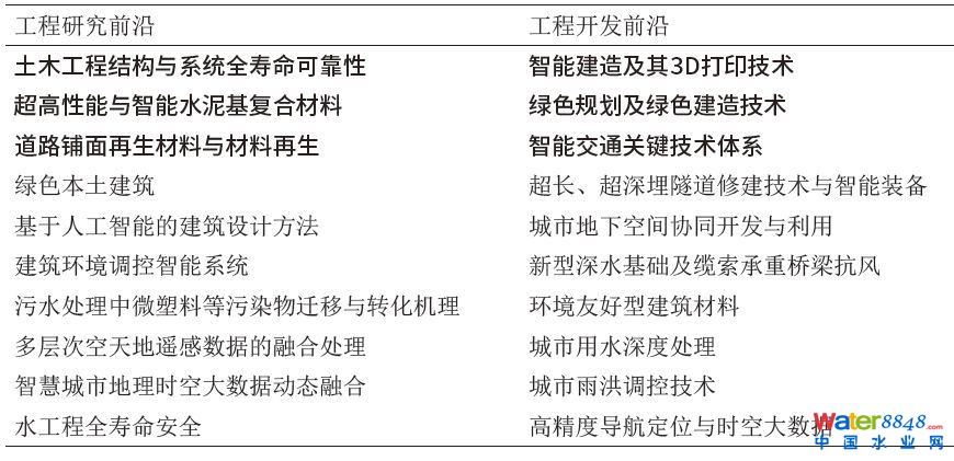 核心提示:土木、環(huán)境領(lǐng)域全球工程前沿2018 來源:中國工程院院刊