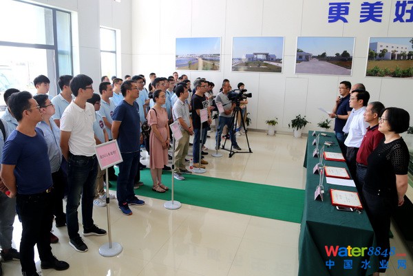 寧波市城市排水有限公司組織首次污水處理工技能比武 公司總經(jīng)理沈浩、黨委書記盧漢清、工會(huì)主席林好斌、副總經(jīng)理邵曉芳悉數(shù)到場(chǎng),盧書記更是全程觀摩,副總經(jīng)理李喬一作為現(xiàn)場(chǎng)裁判
