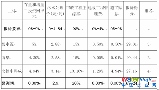 投標評分前四名情況如下: