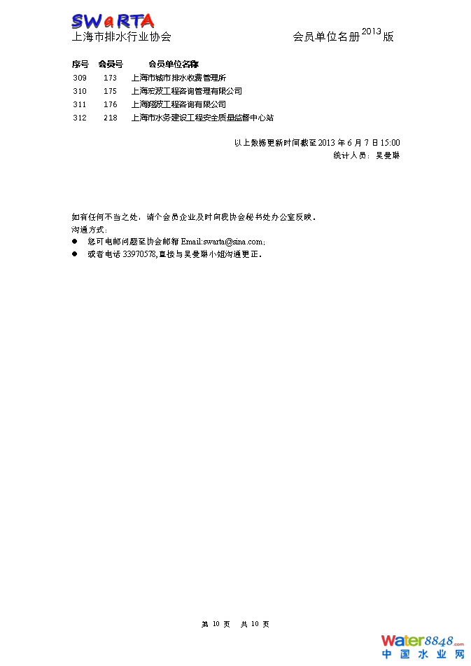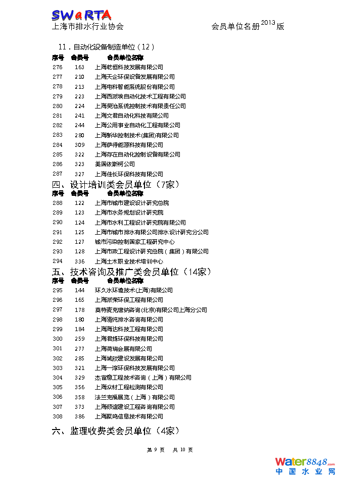 上海市排水行業(yè)協(xié)會SHANGHAI WATER RECLAMATION TRADE ASSOCIATION(縮寫SWaRTA),成立于2005年2月18日,為本市排水行業(yè)企事業(yè)單位自愿組成的跨部門、跨