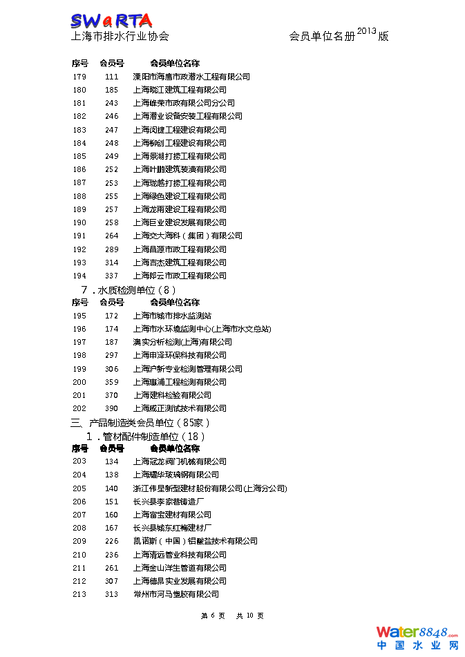 核心提示:上海市排水行業(yè)協(xié)會SHANGHAI WATER RECLAMATION TRADE ASSOCIATION(縮寫SWaRTA),成立于2005年2月18日,為本市排水行業(yè)企事業(yè)單位自愿組成的跨部門、跨所有制的非營利的行業(yè)性社會團體法人