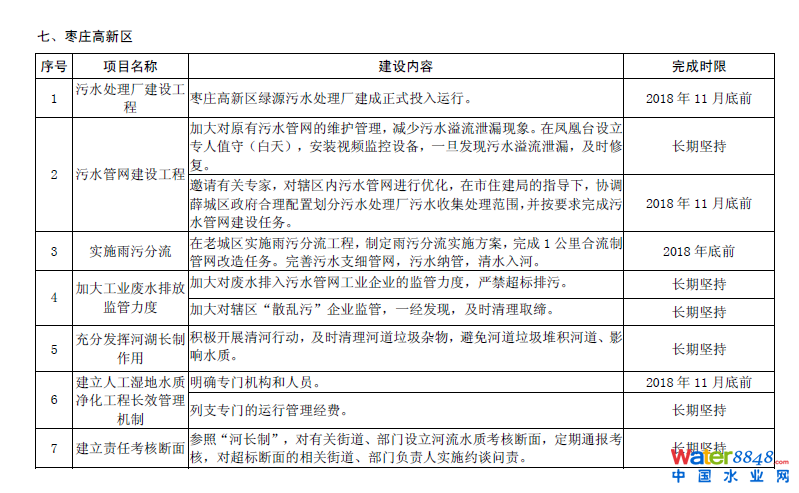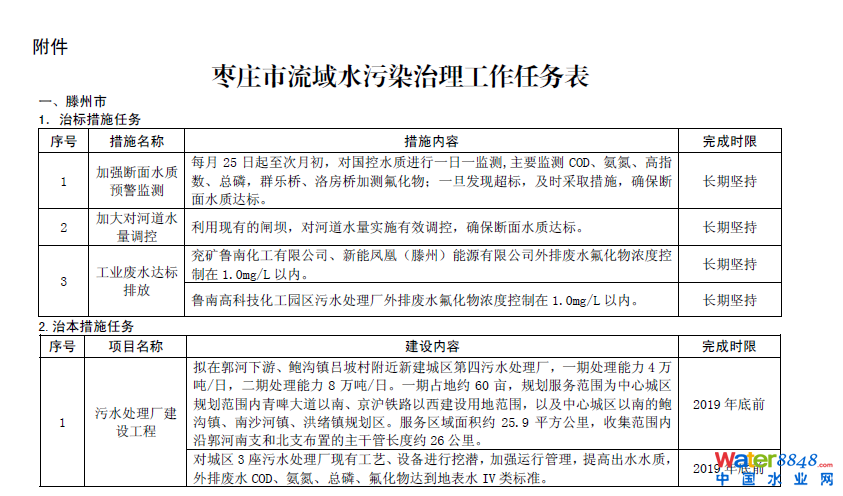 附件:棗莊市流域水污染治理工作任務(wù)表