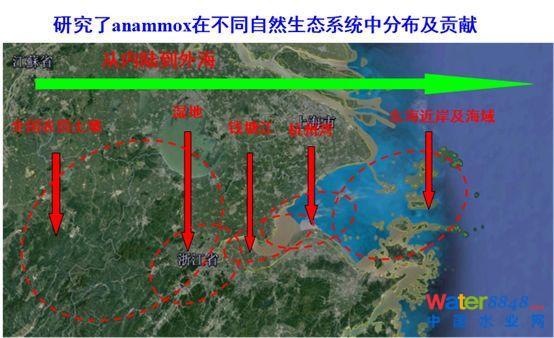 鄭平教授以前的學(xué)生--浙江大學(xué)胡寶蘭教授研究了Anammox細(xì)菌在中國不同自然生態(tài)系統(tǒng)中的分布及貢獻(xiàn)。她發(fā)現(xiàn),Anammox細(xì)菌廣泛存在于不同的自然生境中,且沉積物的有機(jī)碳和無機(jī)氮是影響Anammox分布的主要因素。她還發(fā)現(xiàn)人類活動影響了Anammox菌的分布,甚至特定Anammox菌可作為人類活動的指示菌。