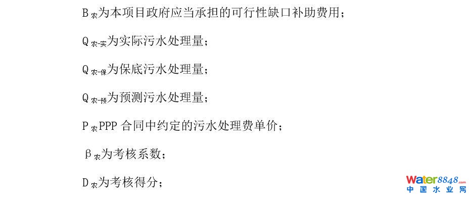 本項(xiàng)目對(duì)可行性缺口補(bǔ)助費(fèi)用的100%進(jìn)行考核,本子項(xiàng)目的可行性缺口補(bǔ)助費(fèi)用的計(jì)算公式如下: