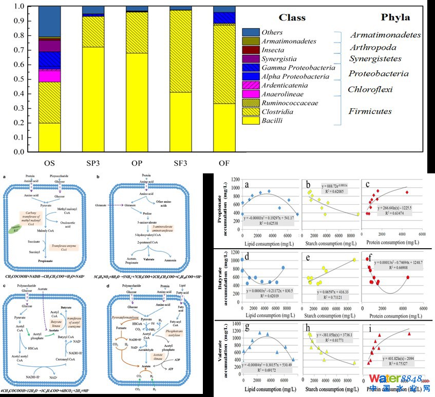 我院劉和教授團(tuán)隊(duì)多年來從事污泥厭氧發(fā)酵定向產(chǎn)酸的技術(shù)、工藝和基礎(chǔ)理論研究。近日,該團(tuán)隊(duì)報(bào)道了城市污泥厭氧發(fā)酵過程中,復(fù)雜的有機(jī)底物是如何影響反應(yīng)器內(nèi)微生物優(yōu)勢(shì)種群的構(gòu)成、代謝途徑的切換以及底物中蛋白質(zhì)、脂類、多糖的組成和厭氧發(fā)酵后的末端產(chǎn)物組成的關(guān)系。結(jié)果表明,有機(jī)底物中的蛋白質(zhì)、脂類和多糖無論何種組成比例,乙酸均為第一優(yōu)勢(shì)脂肪酸。但是在蛋白質(zhì)豐富的情況下,丙酸和戊酸的組成比例明顯上升,而底物中淀粉、糖類豐富的條件下,丁酸和乙醇比例明顯上升。這是由反應(yīng)器中優(yōu)勢(shì)微生物種群以及微生物體內(nèi)的代謝途徑共同決定的。這一研究結(jié)果對(duì)于目前污泥厭氧發(fā)酵領(lǐng)域常見的共發(fā)酵工藝的調(diào)控,即,如何控制共發(fā)酵工藝中發(fā)酵底物的有機(jī)物構(gòu)成,以得到預(yù)期組成的有機(jī)酸末端產(chǎn)物,實(shí)現(xiàn)定向產(chǎn)酸具有重要的理論和工程意義。
