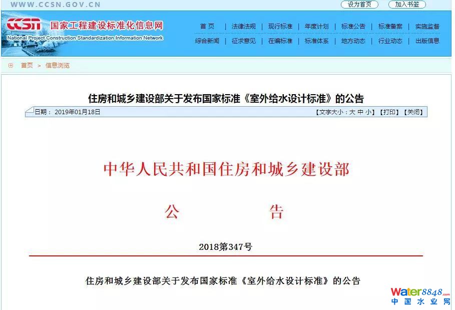 國(guó)家標(biāo)準(zhǔn)《室外給水設(shè)計(jì)標(biāo)準(zhǔn)》GB 50013-2018發(fā)布!