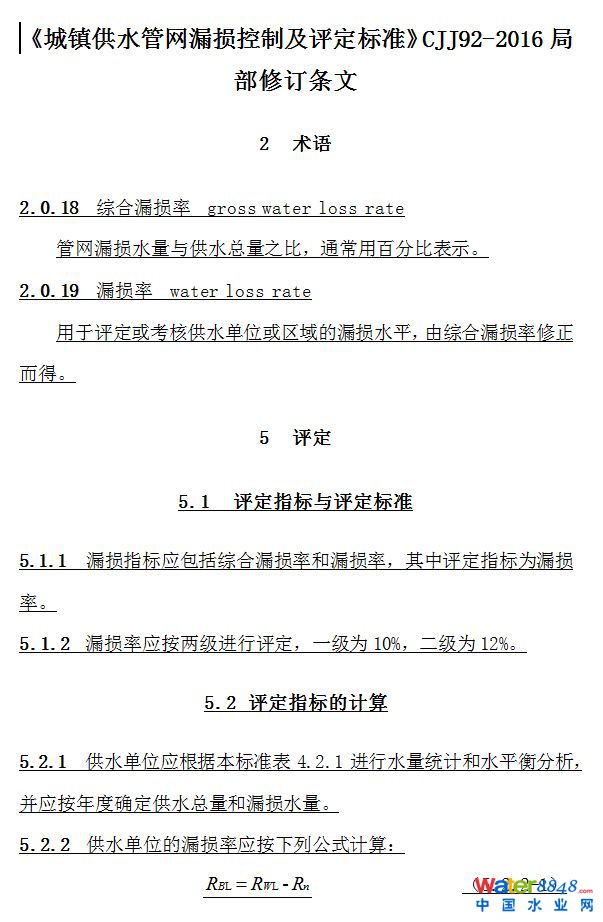《城鎮(zhèn)供水管網(wǎng)漏損控制及評定標(biāo)準(zhǔn)》局部修訂的公告