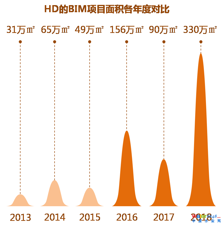 有了前面幾年的積累,加上政府開始加大對BIM技術(shù)的投入,2018年HD開始在湘雅五醫(yī)院、中建鳳凰臺等多個大型項(xiàng)目中開展BIM設(shè)計(jì),BIM項(xiàng)目面積達(dá)到歷年最高。