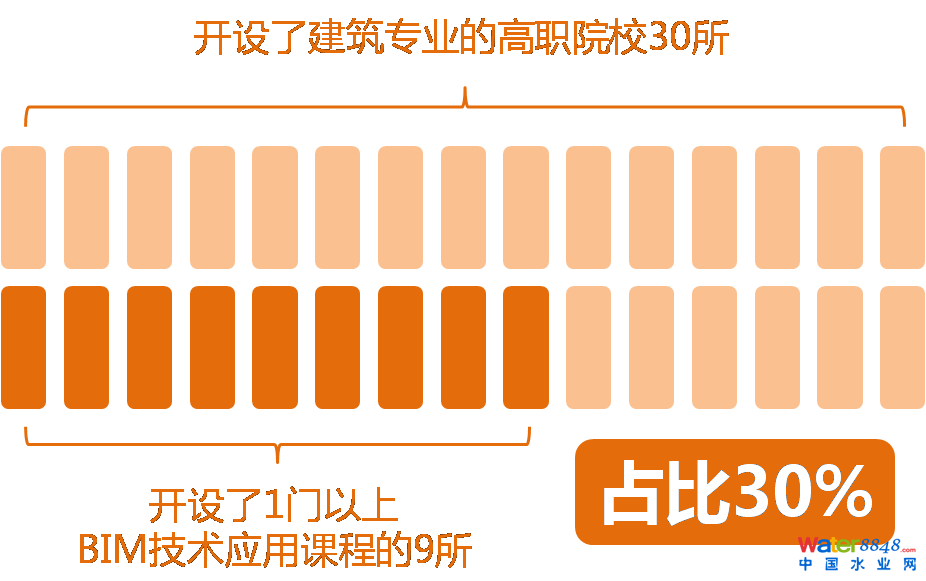 自2004年歐特克與教育部共同推進(jìn)BIM教育以來,目前全國近2000所建筑類院校,開設(shè)BIM技術(shù)應(yīng)用相關(guān)課程的比例為30.5%。