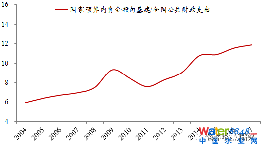 圖表:基建投資中預(yù)算內(nèi)資金占全國(guó)公共財(cái)政支出的比例(%)