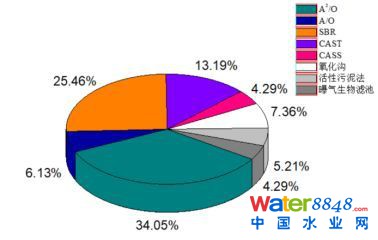 1 2016年浙江省城鎮(zhèn)污水處理廠處理工藝選擇情況