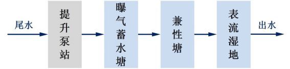 主要以塘系統(tǒng)、潛流濕地和表流濕地作為工藝單元,其中,穩(wěn)定塘單元根據(jù)項(xiàng)目具體情況可以選擇設(shè)置或不設(shè)置,不設(shè)置時(shí)尾水直接進(jìn)入潛流濕地單元,相比塘–床工藝,其主要特點(diǎn)保持一致,只是在后端增加了表流濕地單元,更有利于形成局部景觀(guān)水體或場(chǎng)地水軸,增加工程的景觀(guān)效果。