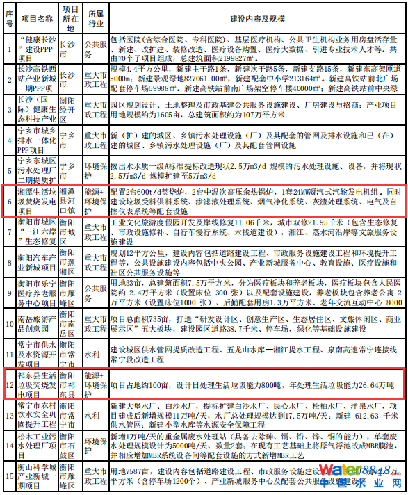 湖南2019年P(guān)PP項目中央預(yù)算投資公示:涉及5個垃圾焚燒項目
