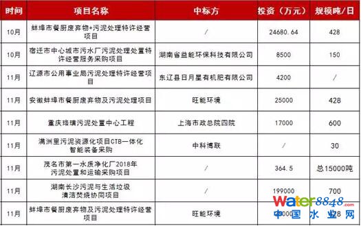 2018年部分污泥項(xiàng)目一覽: