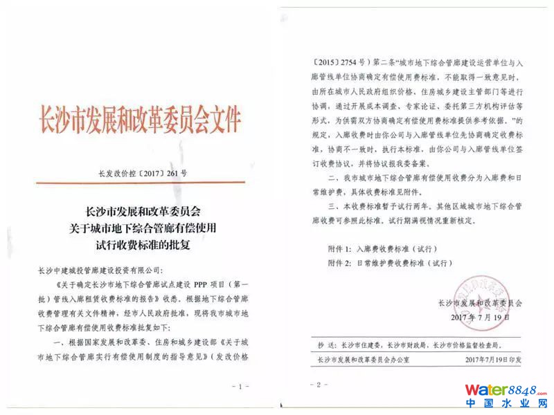 2017年7月,長沙市發(fā)改委就項目各管線入廊和日常維護(hù)的試行收費(fèi)標(biāo)準(zhǔn),進(jìn)行了書面批復(fù),該《收費(fèi)標(biāo)準(zhǔn)》已將八家權(quán)屬單位共計14類管線入廊費(fèi)和日常維護(hù)費(fèi)納入收費(fèi)范圍,為項目正式運(yùn)營收費(fèi)提供了保障。