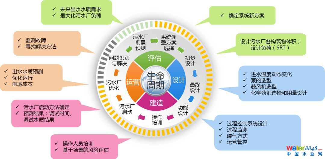 圖3 生物建模技術(shù)在污水處理生命周期過(guò)程中作用