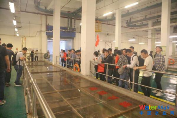 圖為雍文彬副總經(jīng)理為學(xué)員詳細(xì)介紹京溪水廠平面及剖面構(gòu)成。