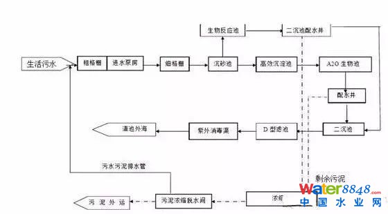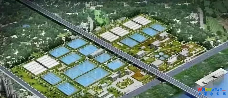 占地540畝,南北長750米,東西寬480米,初始日處理規(guī)模50萬噸。與2014年新建10萬噸擴規(guī)工程,擴建項目由上海巴安水務(wù)股份有限公司采用BT模式投資建設(shè)。