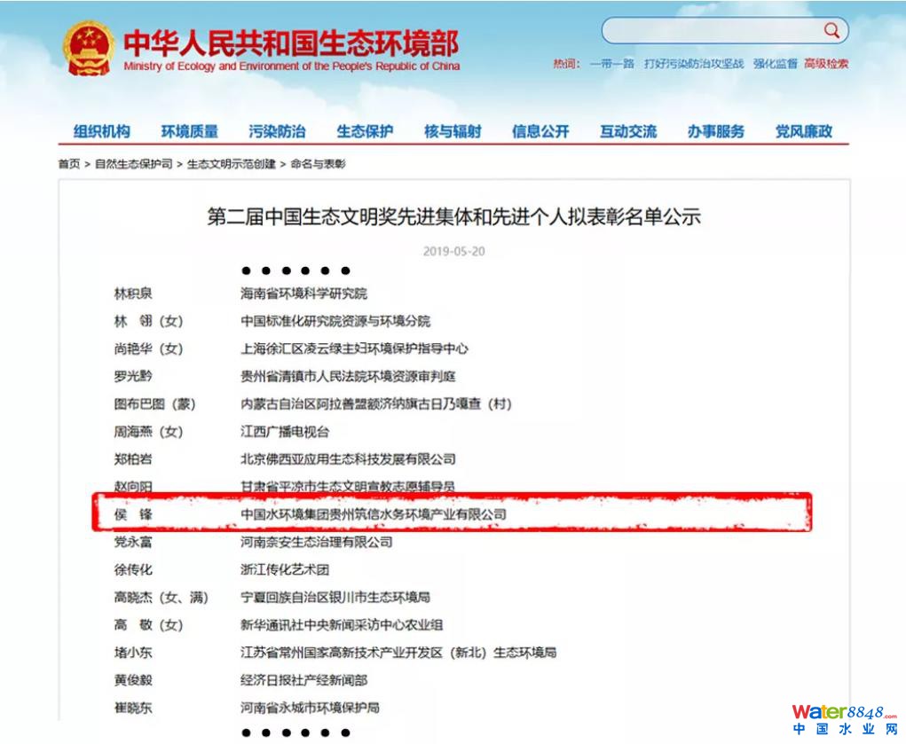 5月31日,生態(tài)環(huán)境部部長李干杰主持召開生態(tài)環(huán)境部常務會議,審議并原則通過第二屆中國生態(tài)文明獎先進集體和先進個人擬表彰名單。全國共有40個先進集體、60名先進個人獲本屆中國生態(tài)文明獎。中國水環(huán)境集團董事長侯鋒榮獲“中國生態(tài)文明獎先進個人”稱號。