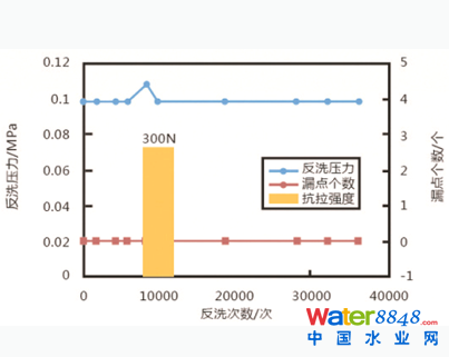 水藝增強(qiáng)型超濾膜采用超親水膜技術(shù)與突破性的高強(qiáng)涂覆技術(shù),應(yīng)用于浸沒式和MBR超濾膜系列,其擁有高抗皮層剝離強(qiáng)度可適用于大通量反洗工藝,抗拉強(qiáng)度高于300N, 最大可耐氧化性(以次氯酸鈉計(jì))可達(dá)5,000mg/L等特點(diǎn),適用于大部分惡劣水體的應(yīng)用。