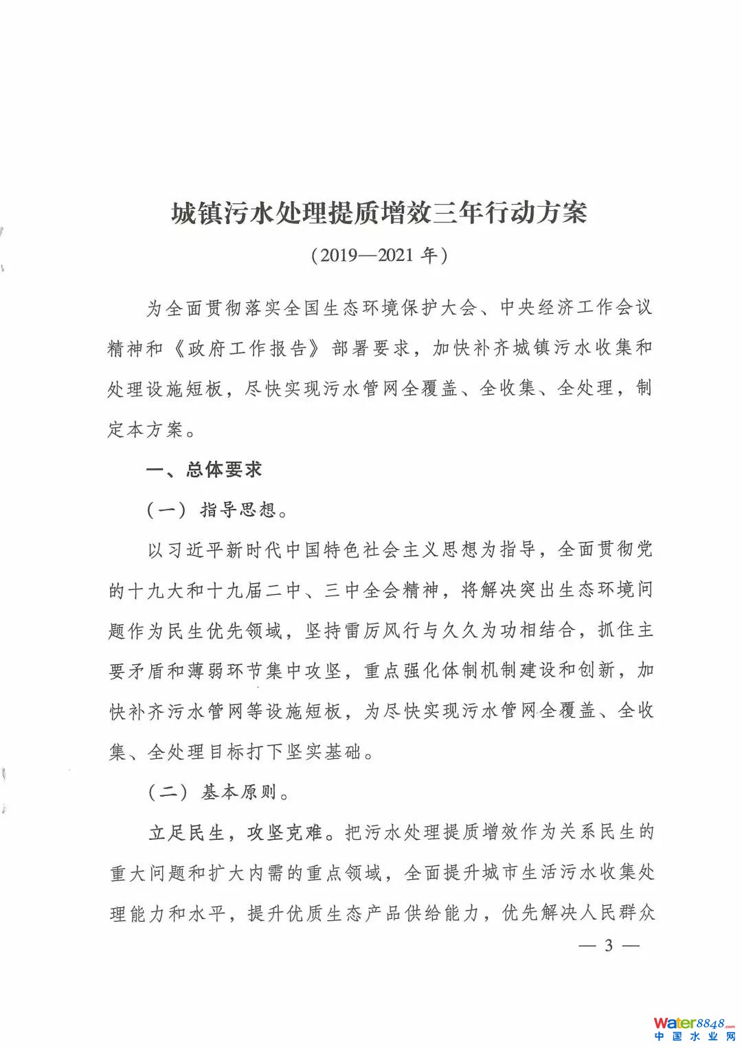 為貫徹落實(shí)全國(guó)生態(tài)環(huán)境保護(hù)大會(huì)、中央經(jīng)濟(jì)工作會(huì)議精神和《政府工作報(bào)告》部署要求,加快補(bǔ)齊城鎮(zhèn)污水收集和處理設(shè)施短板,盡快實(shí)現(xiàn)污水管網(wǎng)全覆蓋、全收集、全處理,經(jīng)國(guó)務(wù)院同意,住房和城鄉(xiāng)建設(shè)部、生態(tài)環(huán)境部、發(fā)展改革委印發(fā)《城鎮(zhèn)污水處理提質(zhì)增效三年行動(dòng)方案(2019-2021年)》。