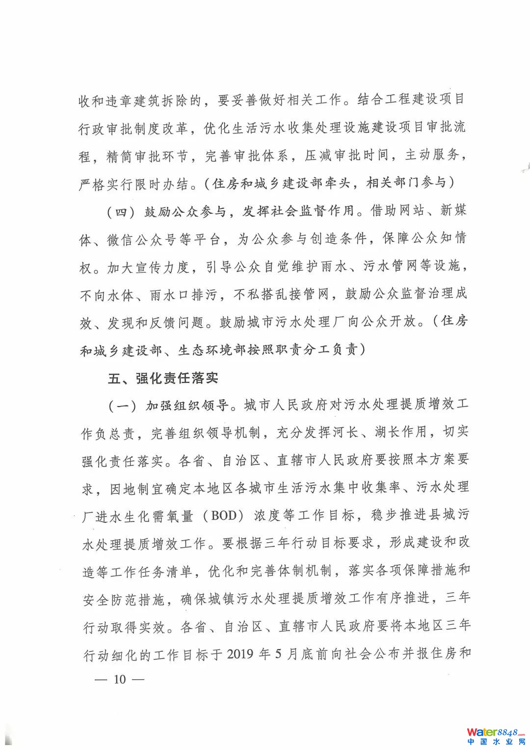 為貫徹落實(shí)全國生態(tài)環(huán)境保護(hù)大會、中央經(jīng)濟(jì)工作會議精神和《政府工作報(bào)告》部署要求,加快補(bǔ)齊城鎮(zhèn)污水收集和處理設(shè)施短板,盡快實(shí)現(xiàn)污水管網(wǎng)全覆蓋、全收集、全處理,經(jīng)國務(wù)院同意,住房和城鄉(xiāng)建設(shè)部、生態(tài)環(huán)境部、發(fā)展改革委印發(fā)《城鎮(zhèn)污水處理提質(zhì)增效三年行動方案(2019-2021年)》。