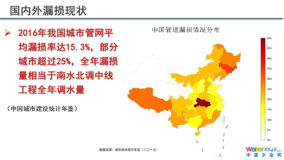 【PPT資料】張土喬:供水管網(wǎng)漏損監(jiān)測(cè)與控制 我國(guó)城市管網(wǎng)平均漏損率達(dá)15.3%,部分城市超過25%,全年漏損量相當(dāng)于南水北調(diào)中線工程全年調(diào)水量