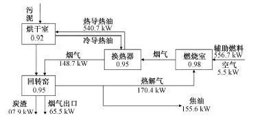 (3)熱解回轉窯的煙氣與污泥造粒的換熱效率假設為95%。