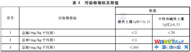 污泥土地改良利用時,其污染物指標(biāo)及限值應(yīng)滿足表4的要求。