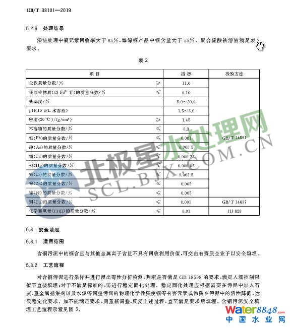 《含銅污泥處理處置方法》(GB/T 38101-2019)發(fā)布 2020年9月1日起施行