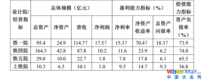 從總體規(guī)模來看,截至2016年底,鐵一院總資產(chǎn)為95.4億元,凈資產(chǎn)值24.9億元,2016年全年完成總營(yíng)業(yè)收入114.7??jī)|元,實(shí)現(xiàn)凈利潤(rùn)17.5??jī)|元;從盈利能力來看,鐵一院2016年凈利率為15.3%?,凈資產(chǎn)收益率為70.4%?,總資產(chǎn)回報(bào)率為18.3%?;從償債能力來看,鐵一院2016年的資產(chǎn)負(fù)債率為73.9%,長(zhǎng)期償債能力略差。