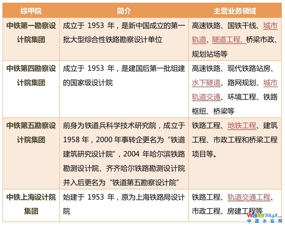 以下4家綜甲院均為中國鐵建股份有限公司全資子公司。