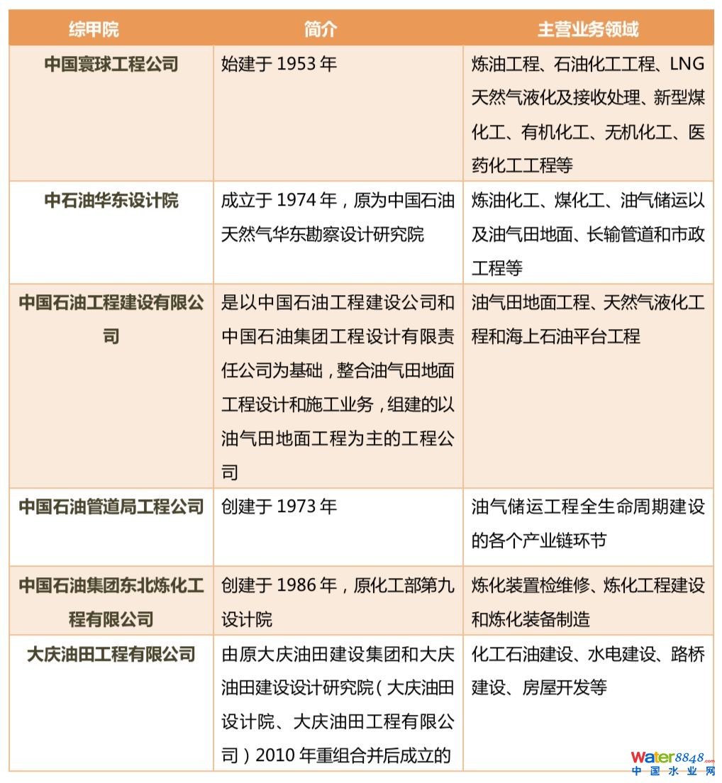 以下6家綜甲院均為中國化學(xué)工程股份有限公司全資子公司。
