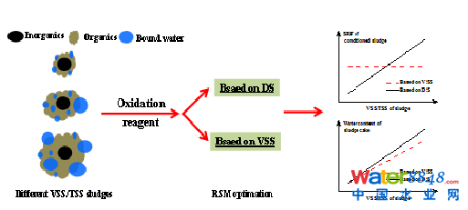 第二篇論文(Wenbo Yu 1, Jiakuan Yang*, Shuangyi Tao 1, Yafei Shi, Jiangwei Yu, Yang Lv, Sha Liang, Keke Xiao, Bingchuan Liu, Huijie Hou, Jingping Hu, Xu Wu. A comparatively optimization of dosages of oxidation agents based on volatile solids and dry solids content in dewatering of sewage sludge. Water Research, 2017, 126: 342-350.》,研究并提出了基于污泥有機(jī)物含量的污泥深度脫水藥劑投加量優(yōu)化新方法。因受污水廠的進(jìn)水水質(zhì)、天氣溫度、處理工藝等多方面影響,使得污水廠剩余污泥的有機(jī)物含量波動(dòng)巨大,造成了目前傳統(tǒng)的基于污泥干基(Dry solid)含量或基于污泥體積的藥劑投加量優(yōu)化與控制方法無法適應(yīng)不同泥質(zhì)污泥的實(shí)際問題。楊家寬教授研究團(tuán)隊(duì)提出基于污泥有機(jī)物含量的藥劑優(yōu)化新方法。該方法很好的克服了目前傳統(tǒng)藥劑優(yōu)化及投加方法的局限性,具有廣闊工程應(yīng)用前景。