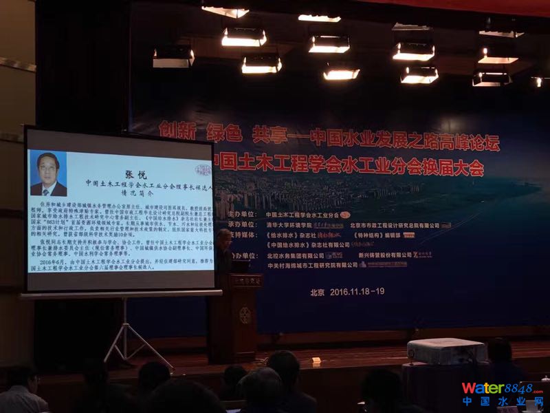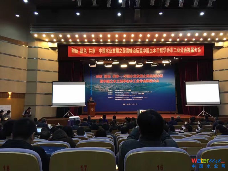 2016年11月18-19日,中國水業(yè)發(fā)展之路高峰論壇暨中國木土工程學會水工業(yè)分會換屆大會在北京的新大都飯店舉辦,會議邀請行業(yè)主管領導、院士、專家以及水工業(yè)分會下屬的給水、排水、建筑給排水、工業(yè)給排水、結構、機械、電氣等7個專業(yè)委員會,圍繞水行業(yè)領域的重點和熱點問題的創(chuàng)新與發(fā)展進行主題交流。