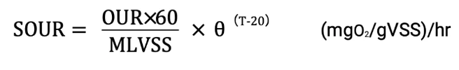 3. 計(jì)算方法:將測得的DO隨時(shí)間變化繪制成曲線,截取曲線中的線性部分求其斜率,該斜率即為耗氧速率(OUR),單位為(mgO2/L)/min。SOUR計(jì)算公式為: