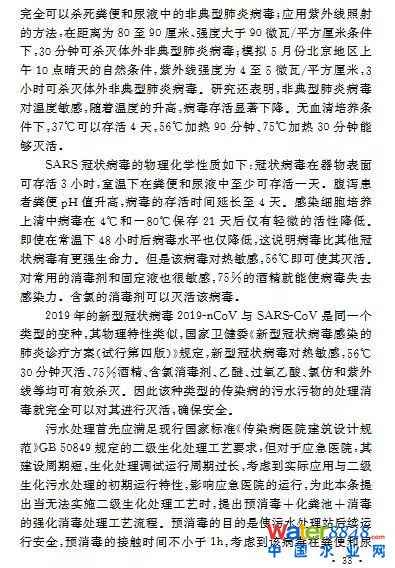 生態(tài)環(huán)境部也于近日印發(fā)了《關(guān)于做好新型冠狀病毒感染的肺炎疫情醫(yī)療污水和城鎮(zhèn)污水監(jiān)管工作的通知》和《新型冠狀病毒污染的醫(yī)療污水應(yīng)急處理技術(shù)方案(試行)》,安排部署醫(yī)療污水和城鎮(zhèn)污水監(jiān)管工作,規(guī)范醫(yī)療污水應(yīng)急處理、殺菌消毒要求,防止新型冠狀病毒通過糞便和污水?dāng)U散傳播。