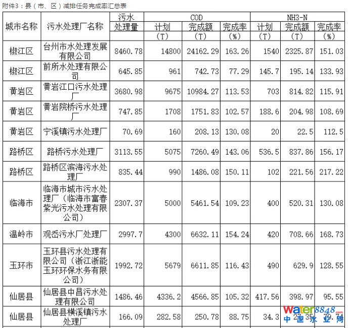 浙江省臺州市城鎮(zhèn)污水處理廠2018年度“三率”情況的通報
