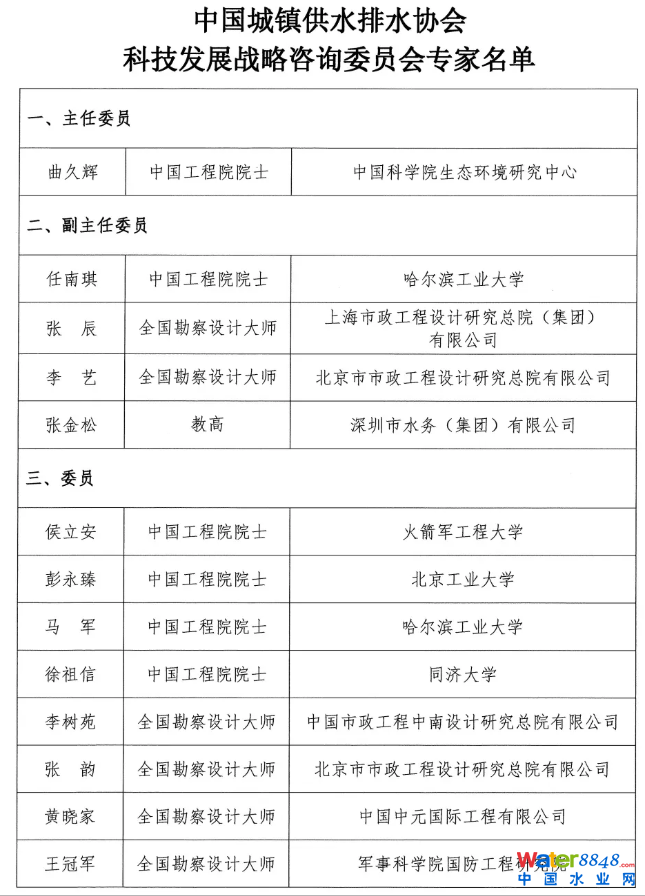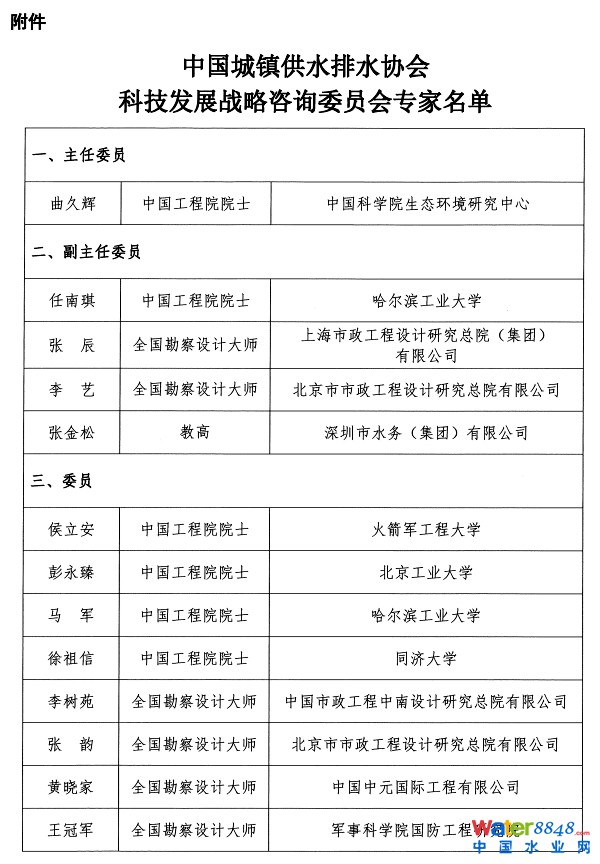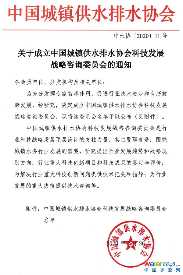 關于成立中國城鎮(zhèn)供水排水協(xié)會科技發(fā)展戰(zhàn)略咨詢委員會的通知