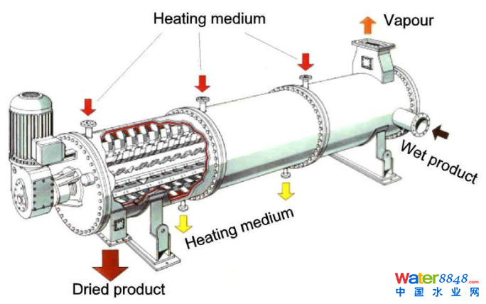 臥式薄層污泥干化工藝是目前我國污泥干化領(lǐng)域的主流工藝之一,它是利用飽和蒸汽或?qū)嵊妥鳛闊崦降拈g接加熱干化工藝。