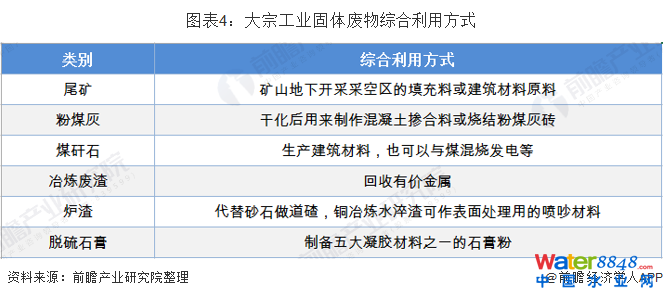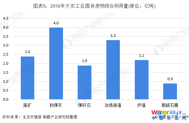 根據(jù)生態(tài)環(huán)境部統(tǒng)計數(shù)據(jù),2018年大宗工業(yè)固體廢物綜合利用量分別為尾礦2.4億噸、粉煤灰4.0億噸、煤矸石1.9億噸、冶煉廢渣3.3億噸、爐渣2.2億噸、脫硫石膏0.9億噸。
