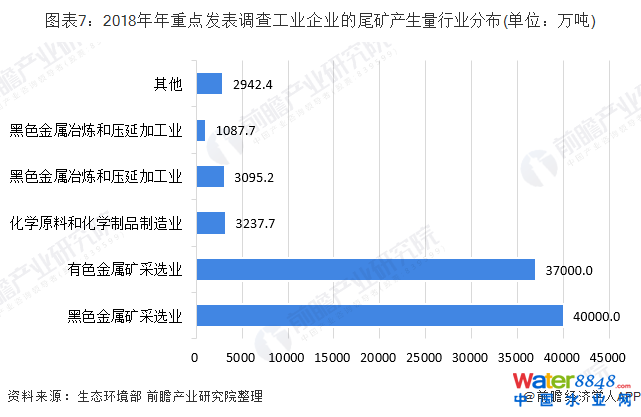 根據(jù)生態(tài)環(huán)境部統(tǒng)計數(shù)據(jù),2018年,重點發(fā)表調(diào)查工業(yè)企業(yè)尾礦產(chǎn)生量較大的兩個行業(yè)是有色金屬礦采選業(yè)和黑色金屬礦采選業(yè),其產(chǎn)生量分別為4.0億噸和3.7億噸,綜合利用率分別為23.4%和26.8%。
