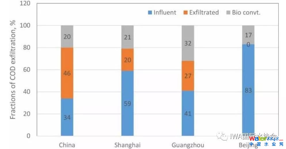 上表2統(tǒng)計(jì)顯示,中國污水管網(wǎng)的整體外滲率達(dá)39%,考慮到南方水位較高,他們認(rèn)為外滲情況主要發(fā)生在北方,而南方以內(nèi)滲為主,致使進(jìn)水濃度便低。但總的來說,這些外滲的COD和氮磷進(jìn)入地下水或者地表水,導(dǎo)致黑臭水體的形成。這種擴(kuò)散污染很難控制,而且其中形成的硫化物、硝酸鹽或亞硝酸鹽會(huì)進(jìn)一步消耗可降解的COD。