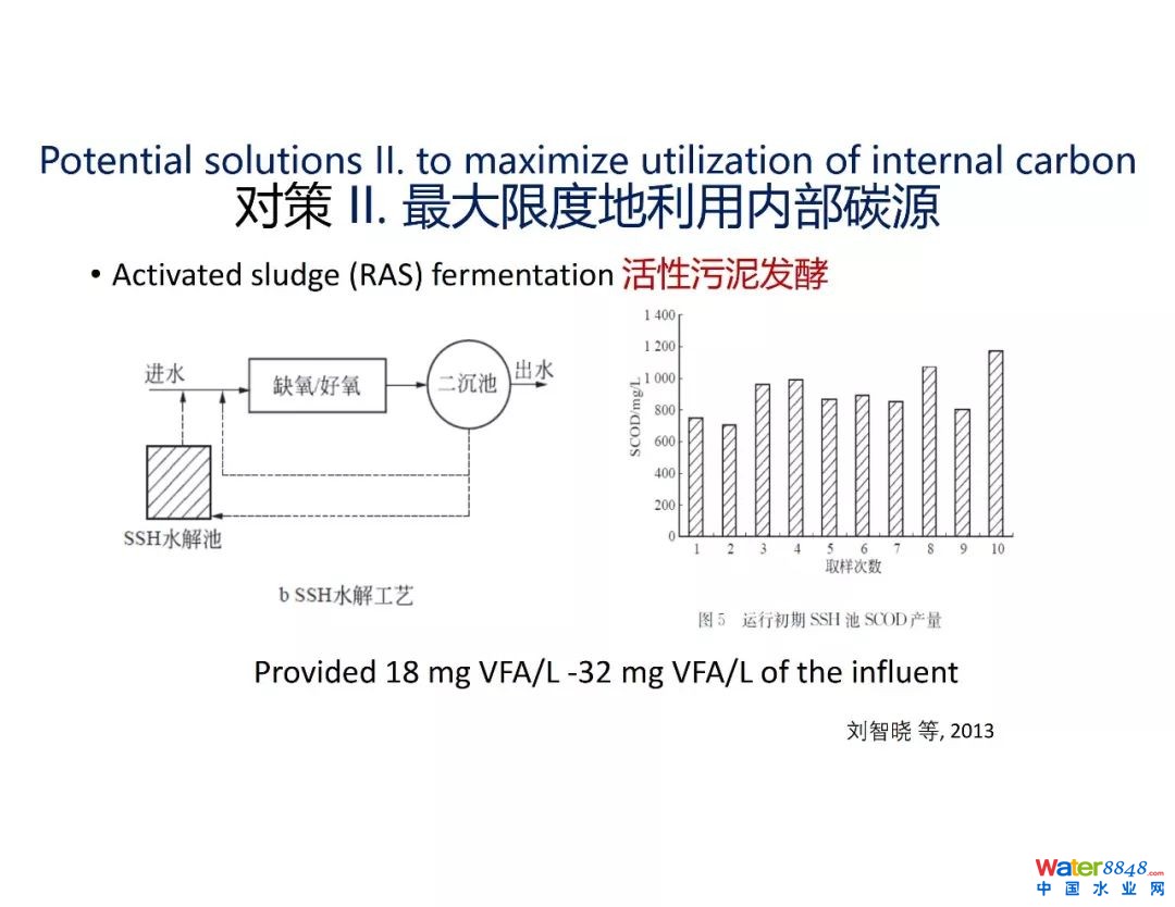另一方面,為了滿足日趨嚴(yán)格的營養(yǎng)物排放標(biāo)準(zhǔn)(例如,TN <10 mg-N/L),外加碳源被越來越普遍地實(shí)踐。以當(dāng)前市場(chǎng)價(jià)格粗略估計(jì), 一個(gè)100,000 m³/d的污水處理廠為購買相當(dāng)于20 mg-HAc/L醋酸(HAc), 每年花費(fèi)大約300萬元人民幣(約45萬美元)。購買碳和化學(xué)物質(zhì)正成為工廠運(yùn)營沉重負(fù)擔(dān)。