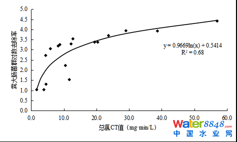 2.3 CT值與糞大腸菌群對數(shù)去除率的相關(guān)性