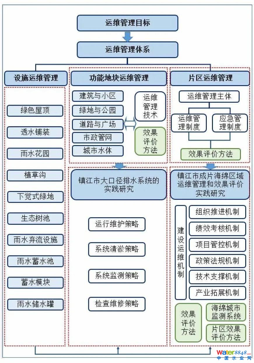 海綿城市運(yùn)維管理技術(shù)與效果評(píng)估的研究成果在鎮(zhèn)江海綿城市建設(shè)運(yùn)維中的應(yīng)用主要體現(xiàn)在市政管網(wǎng)海綿系統(tǒng)和海綿城市片區(qū)系統(tǒng)的建設(shè)運(yùn)營(yíng)維護(hù)方面。