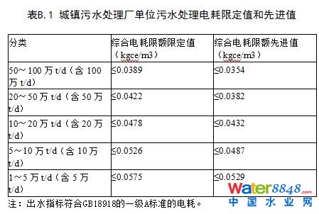 城鎮(zhèn)污水處理能耗限額限定值和先進(jìn)值見(jiàn)表3.0.1。